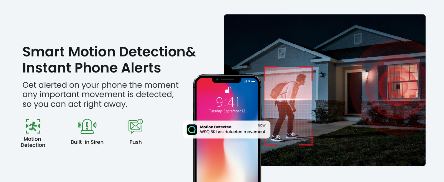 Protect what matters most with real-time notifications. HomiQ’s smart motion and person detection sends alerts straight to your phone, helping you stay aware of any unexpected activity.